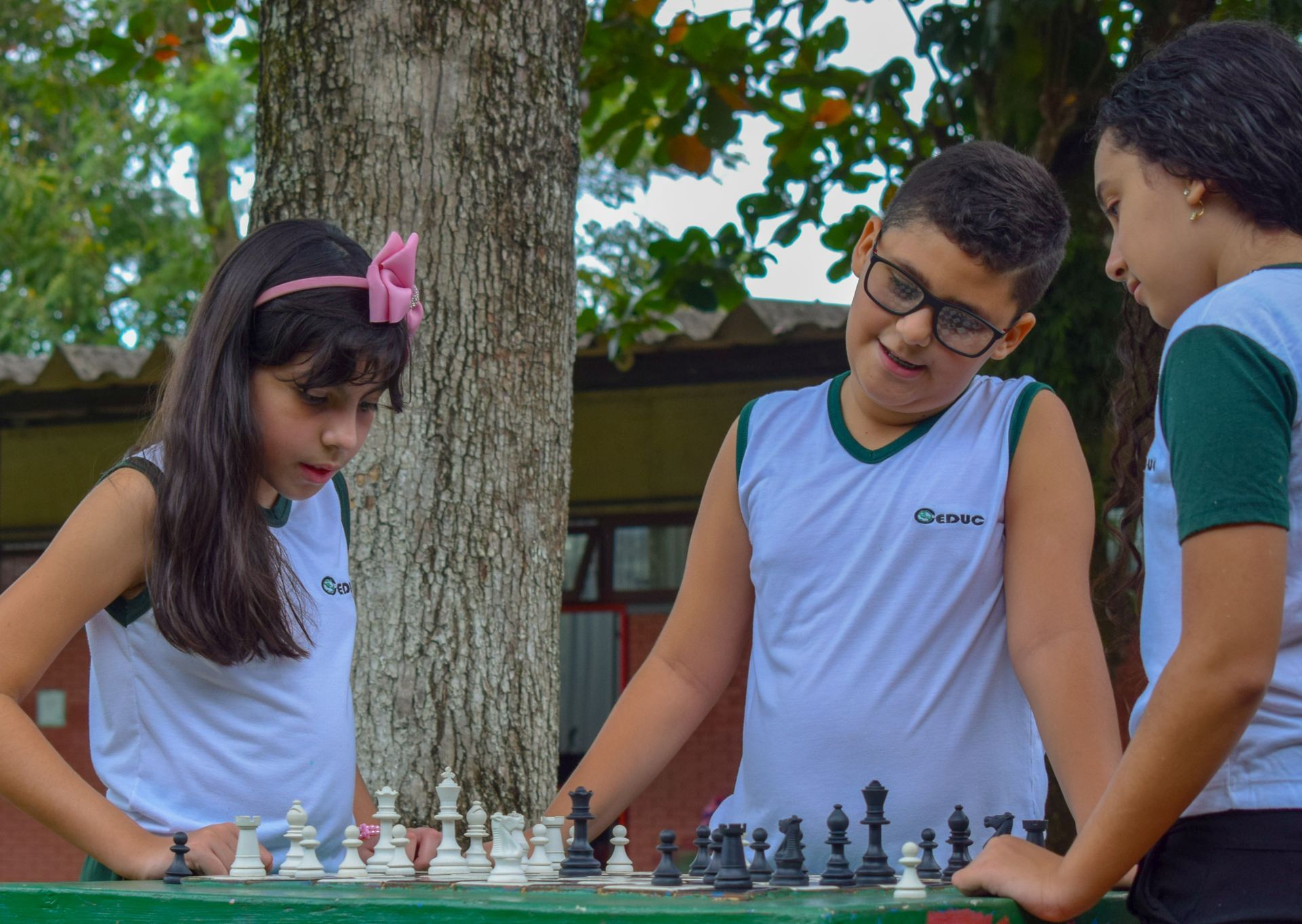 Nos intervalos nossos alunos têm opções de jogos de xadrez, dama, totó e ping-pong.